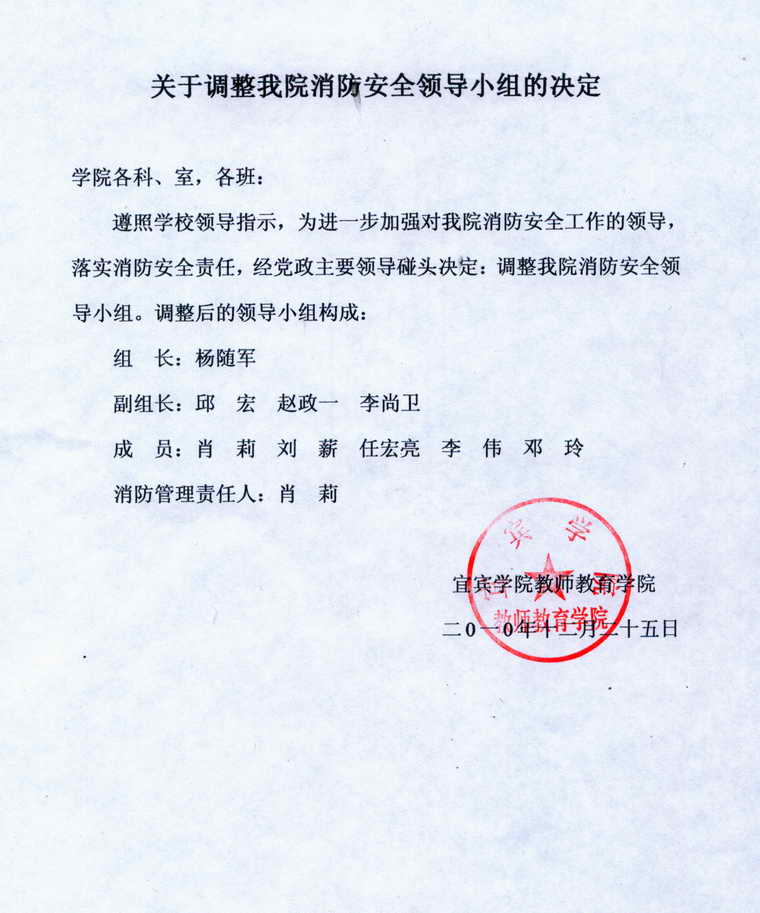 关于调整公司消防安全领导小组的决定