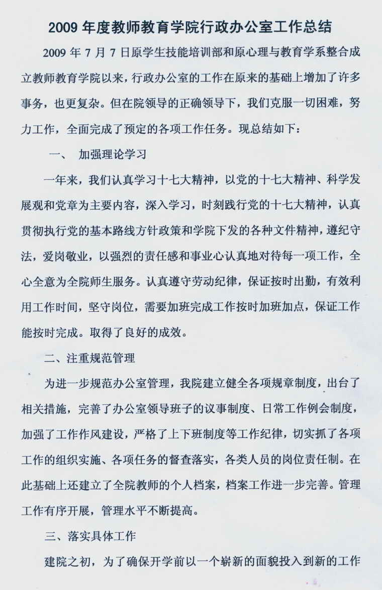 2009年度bv伟德国际1946行政办公室工作总结