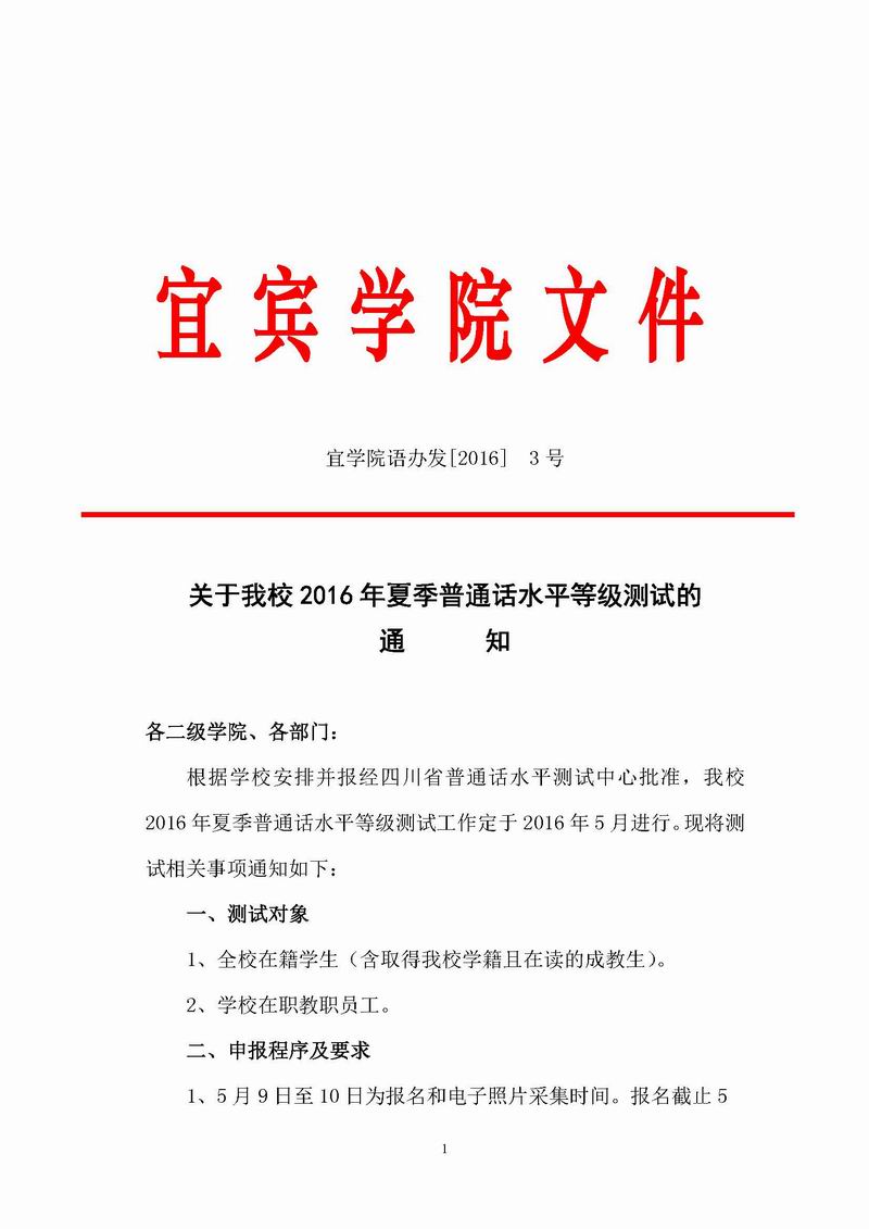 关于公司2016年夏季普通话水平等级测试的通知