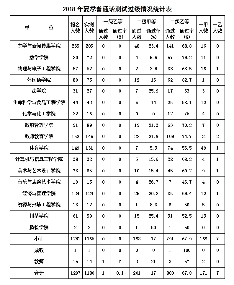 附件:《2018年夏季普通话水平测试过级情况统计表》