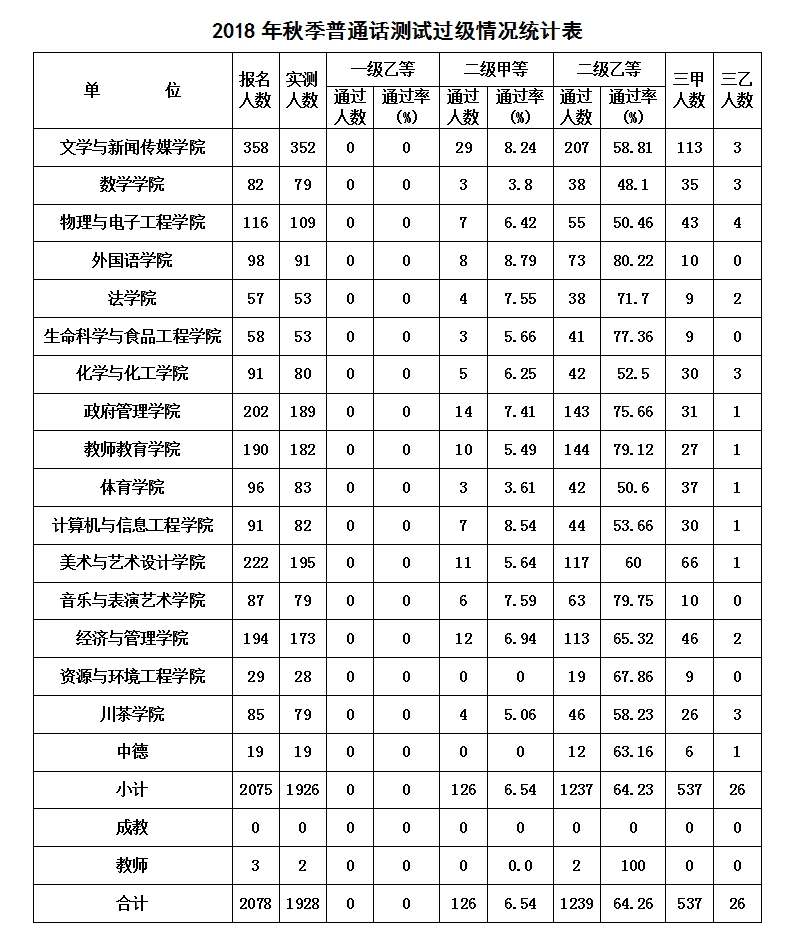 附件:《2018年秋季普通话水平测试过级情况统计表》
