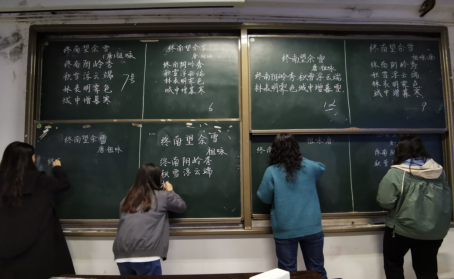 10月24日上午,第四届教师教育类员工粉笔字书写比赛在一教楼202教室举行。语委办主任何会宁莅临比赛现场并讲话,中国书法家协会会员、四川省书法家协会理事、宜宾市书法家协会副主席兼秘书长曾德宏,中国书法家协会会员、宜宾市书法家协会副主席王连富,南京大学书法硕士研究生、宜宾市中国书法文化艺术研究协会副秘书长沈文静出任比赛评委。