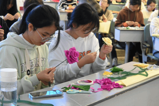 首先,李蓝对来自各学部的同学表示热烈的欢迎。接着,协会负责人统一为大家发放制作材料和工具,并让大家根据自己的喜好,展开想象开始制作,在李蓝的演示和指导下,同学们顺利完成了制作。