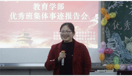 为持续深入推进学部优良学风班风建设,进一步将团员和青年主题教育落地落细,充分发挥优秀班集体榜样引领和示范作用,教育学部于11月16日在博雅楼B201开展优秀班集体事迹报告会,教育学部团总支书记唐辉、辅导员王勤、李佳欣、杨云云、李璐出席本次报告会。