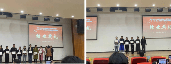 四川省2023年国培县级农村骨干教师(“一村一幼”新入职及骨干辅导员)培训圆满完成为期10天的培训任务,于11月26日晚在bv伟德国际1946求是会堂举行了结业典礼。bv伟德国际1946教育学部党总支副书记(负责工作)刘薪、创新创业学院副经理(负责工作)单琰秋、教育学部副部长杜江、培训班班主任和全体学员参加了结业典礼。