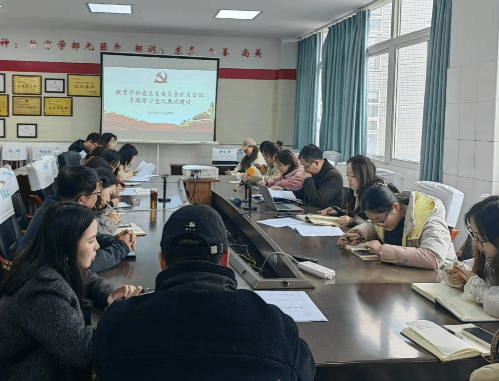 12月29日上午,教育学部党总支在博雅楼B506召开党总支委员会扩大会议专题学习党风廉政建设,会议由教育学部党总支副书记刘薪主持,学部全体教职工参会。