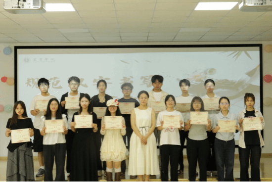 本次活动融入宜宾公司校歌元素,选手在书写中诠释校训精神,实现了传统文化与校园文化的有机融合。沈文静总结道:“比赛不仅是技艺的比拼,更是一次文化自信的生动实践。希望同学们以笔墨为媒,传承文明薪火,夯实从教根基”。通过反复甄别比较,最终评选出各组的一二三等奖,并举行了现场颁奖仪式。