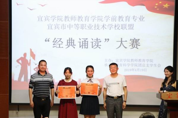 为了传承中华传统文化以及提高学前教育专业员工技能水平,教育科学学院于2019年4月19日下午3点半,在三教A座101教室举办了伟德国际1946源于英国学前教育专业员工“经典诵读”大赛,参加单位有公司学前教育专业和联合办学单位—宜宾市职业技术学校、屏山县职业技术学校、兴文县职业技术学校、高县职业技术学校的学前教育专业9支员工代表队。比赛邀请了公司教育科学学院刘香老师,宜宾市职业技术学校彭钰老师,屏山职业技术学校王茂兰老师,高县职业技术学校林静老师,兴文县职业技术学校兰洪老师作为评委,公司学前教育专业员工及联办单位学前教育专业员工约140人观摩了比赛。