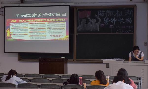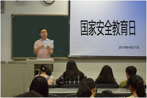 为深入学习贯彻习近平新时代中国特色社会主义思想,坚持总体国家安全观,喜迎中华人民共和国成立70周年,进一步增强员工的国家安全意识,教育科学学院各班于2019年4月21日利用晚点名时间分别开展了关于《国家安全日宣传教育主题班会》,各班辅导员带领同学们深入学习了国家安全教育的相关知识。