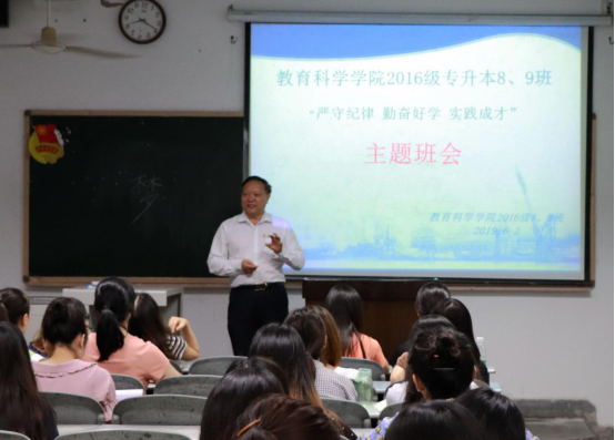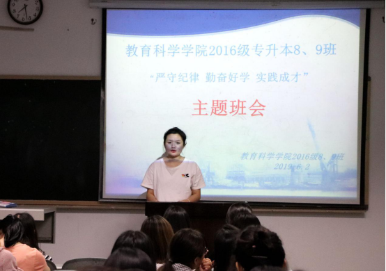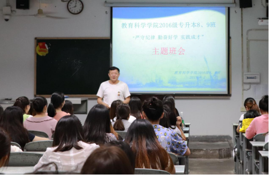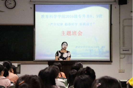 2019年6月2日晚7点20,教育科学学院在2016级专升本8、9班举行了以“严守纪律、勤奋好学、实践成才”为专题的主题班会,公司党总支书记杨随军、经理何会宁及辅导员王会老师出席了本次班会活动。