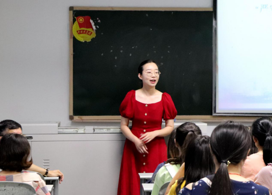 班会第一环节:优秀党员员工代表发言。廖蓉和吴月从自律和终生学习出发,讲述身为一名党员的基本要求,并鼓励其他同学积极入党。
