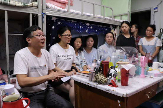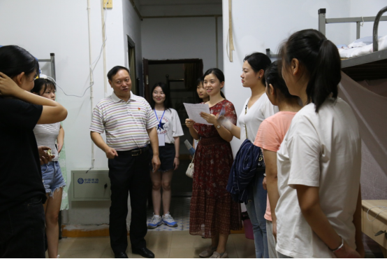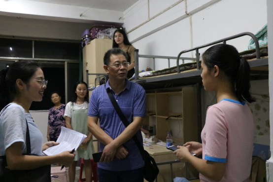 为进一步了解新同学入学情况,引领新生尽快适应新环境,指导好新生更好的学习和生活,让新生充分感受到公司领导老师对新同学的关怀,公司开展了 “走近新生,送去关心”走访寝室活动。2019年9月11日晚7点半,教育科学公司党总支书记杨随军、经理何会宁、党总支副书记赵政一、副经理刘伟以及专兼职辅导员刘新、杨云云、陈琴、沈文静、聂凤老师,带领团总支员工会干部分四个小组走访了公司各新生寝室,带去全院师生员工对新生的关怀问候。