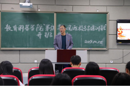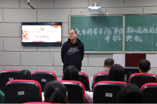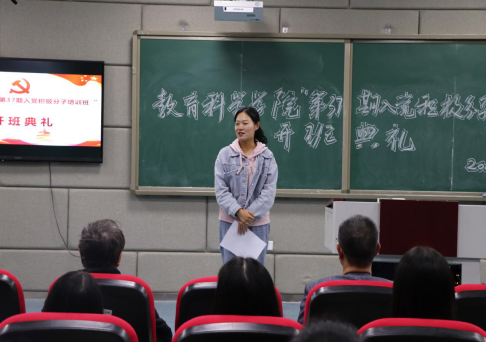 为贯彻落实党的十九大精神,认真开展“不忘初心、牢记使命”主题教育,2019年10月16日16:30,bv伟德国际1946第37期入党积极分子教育科学学院培训班在艺术楼B座201室正式开班。党总支副书记赵政一、培训班班主任贺岷、学前教育支部书记沈文静、小学教育支部书记李伟、应用心理学支部代理书记刘新与第37期入党积极分子培训班全体学员参加了开班典礼。沈文静主持开班典礼。