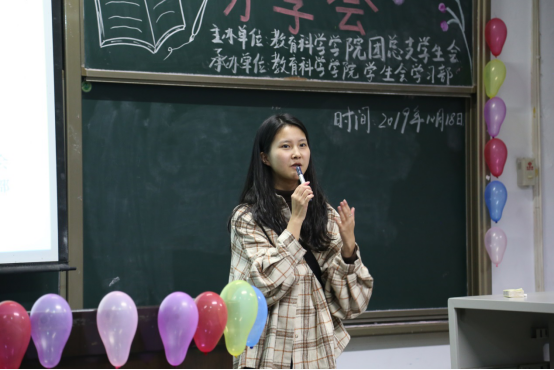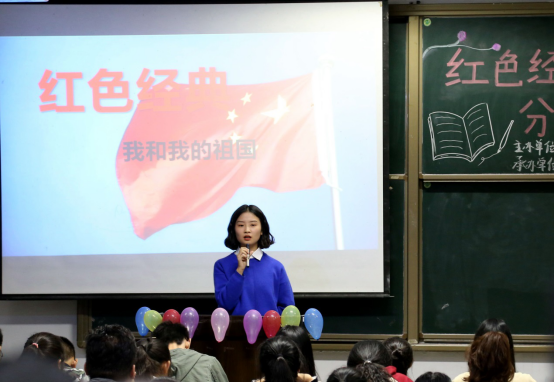 为热烈庆祝中华人民共和国成立70周年,增强同学们的民族自尊心、自信心与民族自豪感,教育科学学院于2019年10月18日晚七点,在一教202开展了 “红色经典”作品分享会。员工会主席李欣源、副主席沈婷、何传亮、团总支副书记王瑾慧、雷琳等员工会干部参加本次活动并担任评委,教育科学学院2019级全体新生参加了此次活动。