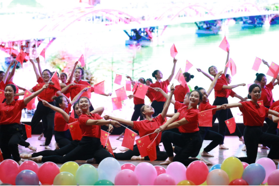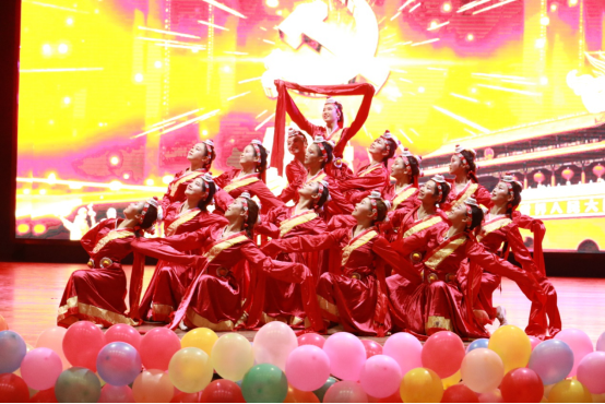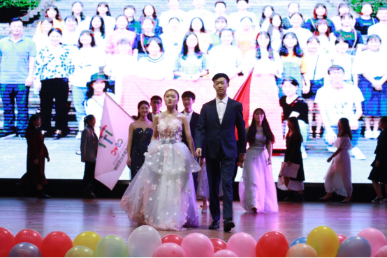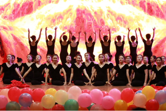 接下来,由团总支员工的主席团以及干部们向观众展示了一场既欢快又时尚的走秀表演《Next level》,表现员工干部们青春洋溢的精神面貌,一场盛大的晚会背后是他们在默默工作着。晚会最后,2017级9班的歌舞《我和我的祖国》将晚会氛围推向高潮,员工以优美的舞姿带动所有嘉宾及观众一起歌唱,一起舞动,整个晚会在激情昂扬的歌声中结束。