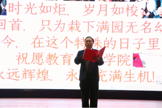 晚会伊始,朝气蓬勃的开场舞,为盛大的庆祝活动拉开序幕。董事长王玲致辞,她祝贺教育科学学院建院10周年,也肯定了教科院十年来各方面取得的成就,最后祝愿教育科学学院蓬勃发展,奋勇向前!