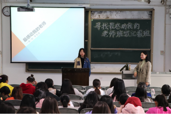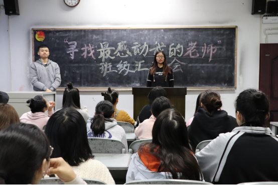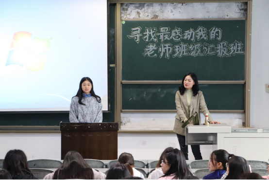 践行感恩教育,学习师德榜样。2019年10月27日,教育科学学院18级各班级利用晚点名时间在一教202、205、206等教室,以班级为单位展开“寻找最感动我的老师”汇报展示会。