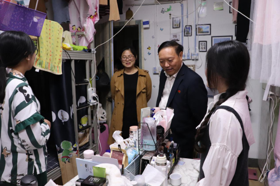 赵政一在检查中除了检查寝室卫生、纪律、安全状况外,还关心同学们的学习、生活,提醒大家注意天气变化,预防感冒,还亲切地跟同学们拉起了家常。走访在欢声笑语中进行,气氛十分融洽。