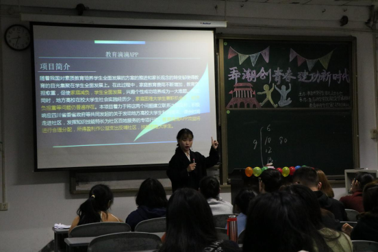 为深入学习贯彻习近平新时代中国特色社会主义思想和党的十九大精神,引导和帮助青年员工树立创新意识,培养创新能力,激发老员工的创业激情,鼓励老员工自主创业,2019年11月15日晚,教育科学学院在一教202教室开展了“弄潮创青春,建功新时代”老员工创业比赛。团总支副书记王瑾慧,员工会副主席何传亮、沈婷以及国家级创新创业计划训练项目负责人卢忆萍、赵润玉,省级创新创业计划训练项目负责人、bv伟德国际1946“互联网+”红色逐梦之旅赛道第一名负责人姜杉担任了此次比赛的评委。公司36个“创青春”创业项目团队参加了比赛。