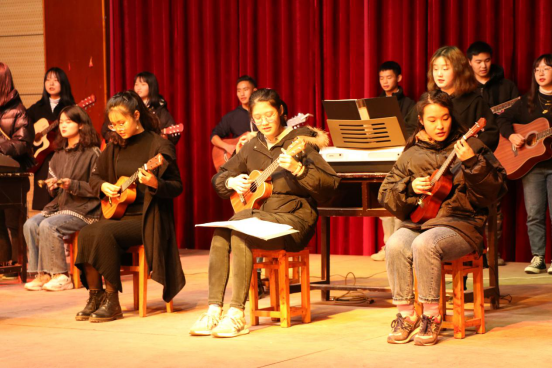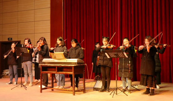 晚会刚开始主持人组织开展“一元五角”这个游戏,活跃了全场氛围。接下来是器乐团的各个器乐小组准备的表演,分别是:小提琴组带来的《合唱曲》;箫笛组演奏的《斯卡布罗集市》;古筝组带来的《站台风》;二胡组演奏的《大鱼海棠》;尤克里里组演奏的《东西》。曲曲入耳,赢得了观众的阵阵掌声。从中还穿插了主持人队的相声表演,舞蹈队的《活力青春颂》,合唱队的歌曲串烧。最后一个节目器乐团大合奏《雨碎江南,客缘》,气势恢宏,将现场气氛达到一个高潮。晚会由赵政一书记带领大家做了几个小游戏完美结束。