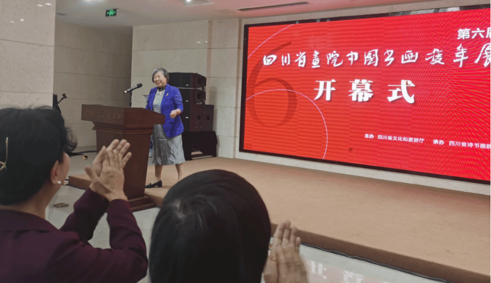 下午14:00——14:30,在四川省诗书画院举行第六届四川省画院中国书画双年展开幕式。四川省诗书画公司党支部书记、副经理薛磊主持开幕式。四川省文化和旅游厅原一级巡视员、四川省诗书画院常务副经理王琼致辞。四川省政协原主席、四川省诗书画院经理秦玉琴宣布展览开幕。