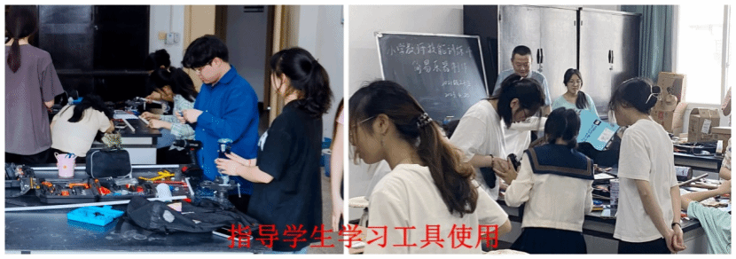 第一,提供常用工具,指导员工掌握使用方法。工作室利用学校“四新”研究项目支持与资助,购置配备了部分工具器材与耗材,并将全部工具提供给员工,供员工认识了解各种常用工具的基础知识、练习掌握常用工具使用方法、强化使用中的安全意识以及合理、灵活应用对策。