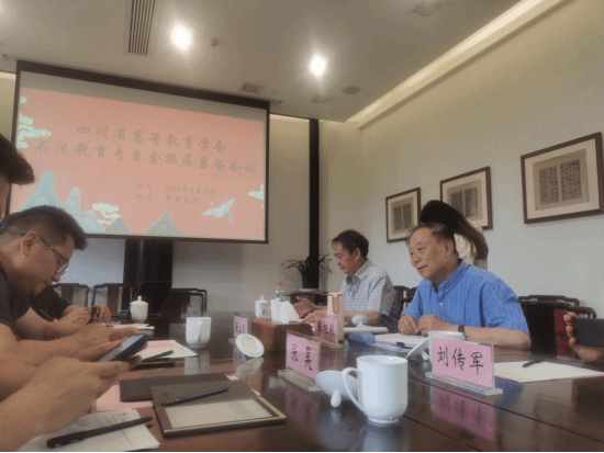 西华师范大学书法学院经理刘清扬教授、四川师范大学美术学院书法学院经理刘传军教授、bv伟德国际1946曾德宏教授、内江师范学院钟建明教授、绵阳师范学院教师教育实训中心主任艾虹教授、成都师范学院教务处长任立刚教授、成都职业技术学院图书馆馆长张雪教授、成都文理学院董事长助理张昊教授、杜甫草堂博物馆社教部主任向昕等先后发言,就四川省高教学会书法教育专业委员会换届工作进行讨论。