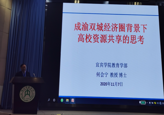 何会宁部长在论坛作了《成渝双城经济圈背景下高校资源共享的思考》主题报告,围绕高校资源共享的具体内容、共享高校资源存在的问题以及成渝双城经济圈背景下高校资源共享的宜宾实践作了精彩汇报,提出新时代、新征程、新发展,必须用共享的理念推进高等教育发展的观点。