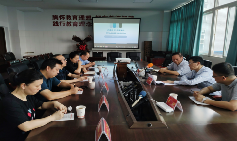 2021年7月6日上午,西南大学张志远副研究员、西南大学学位办公室主任陈洋,来我部指导团队建设和学位点申报工作。宜宾公司党委委员、教育学部党总支书记、部长何会宁,党委综合改革与发展规划部副部长徐斯雄,高等教育研究所田联进、孔丽苏,法学与公共管理学部陈世海,以及教育学部各教研室主任、教授等人参加会议。