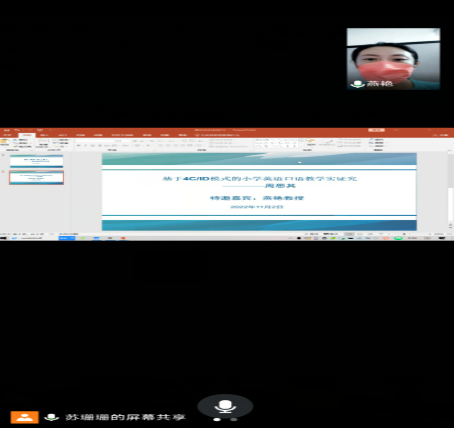小学教育专业青年教师周思其就其论文《基于4C/ID模式的小学英语口语实证研究》作了交流发言,她对论文的研究背景、文献综述、教学设计、实验研究以及总结展望五个方面作了简要的汇报,阐述了“4C/ID模式可以用于小学英语复杂技能培养;较之传统英语教学模式,4C/ID模式在提升小员工口语水平和自导学习能力、缩小员工之间成绩差距等方面具有优势,同时在强化员工知识记忆、提高员工对学习目标的把控能力等方面存在不足。”