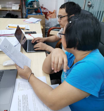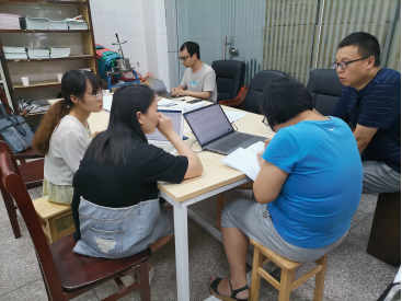 下午14点30分。吴主任带领各组老师修改、完善小学教育师范认证自评报告,包括培养目标组、课程与教学组、员工发展组。