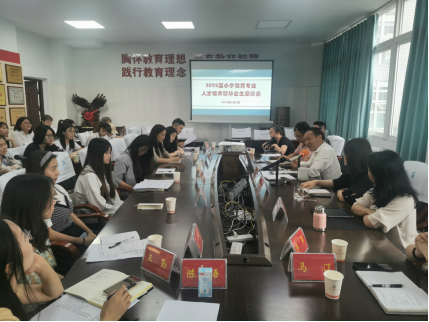 6月9日,教育学部小学教育教研室在博雅楼B506召开了小学教育专业2022届毕业生座谈会。教育学部部长何会宁、副书记李伟、党总支正处级组织员蒋泓洁、小学教育教研室主任郑婉秋、薛肖飞、教学秘书马辽、李苹、胡洁、汪娟、陈语、田露威、丁友鹏、贾高明老师及来自2022届5个班的近30名毕业生代表参加座谈会,会议由小学教育教研室主任郑婉秋主持。