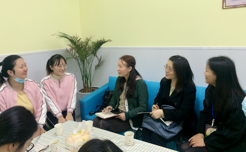 调研组一行首先来到了泸州市康城路幼儿园,参与本次调研的还有泸州市江阳区华阳街道教管中心主任许治辉、康城路幼儿园副园长李润珠、安办主任唐晓燕、教学主任赵雪洁以及毕业生代表张琼瑶,在康城路幼儿园会议室中,调研组与幼儿园相关同志就“人才培养方案”“幼儿园需求”“培养目标与定位”“毕业要求”等方面进行了探讨。